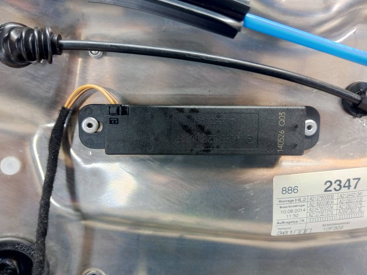 В двери установлено: Стеклоподъемник Замок двери Антенна комфортного доступа Коса проводов Трос внутренней ручки открывания замка Скелет наружной ручки открывания замка Ручка наружная, форточка двери
