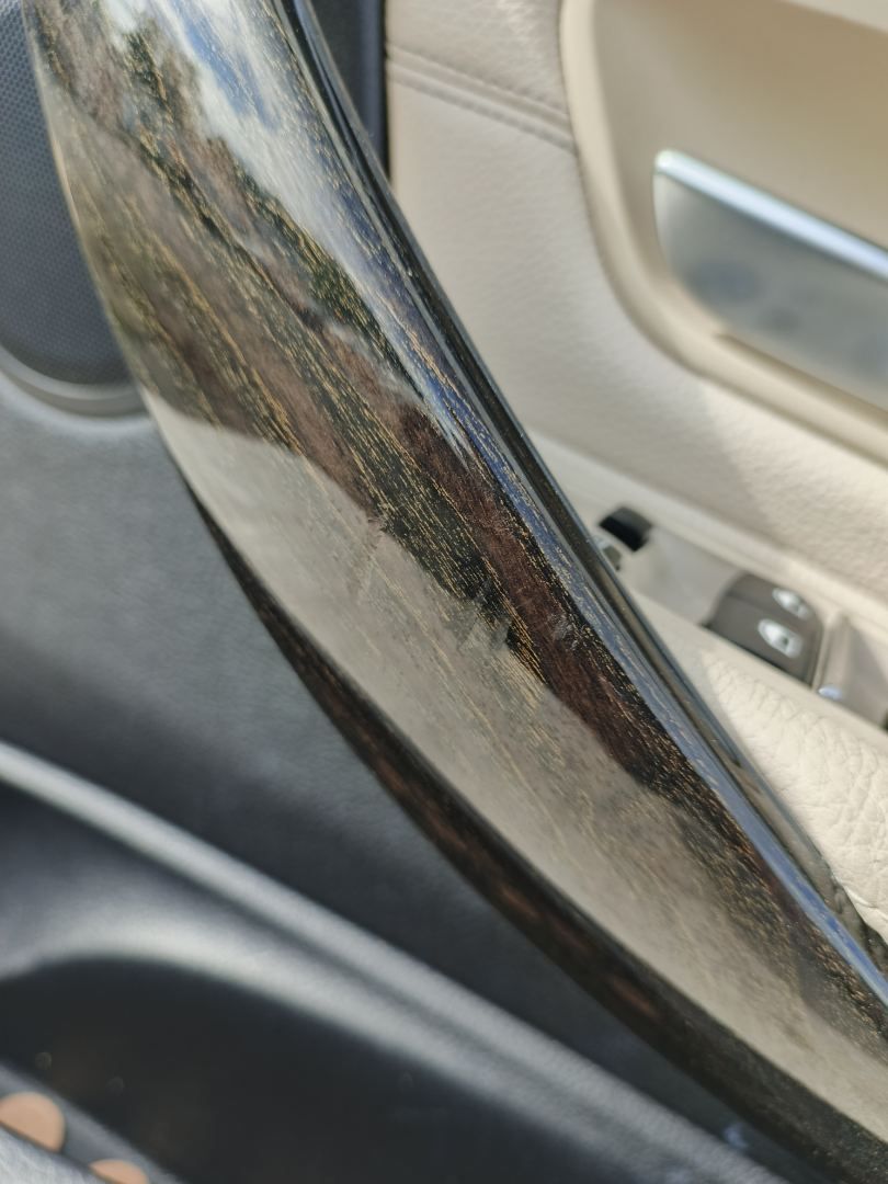 На декоративной накладке поручня обшивки двери присутствуют вмятины.
