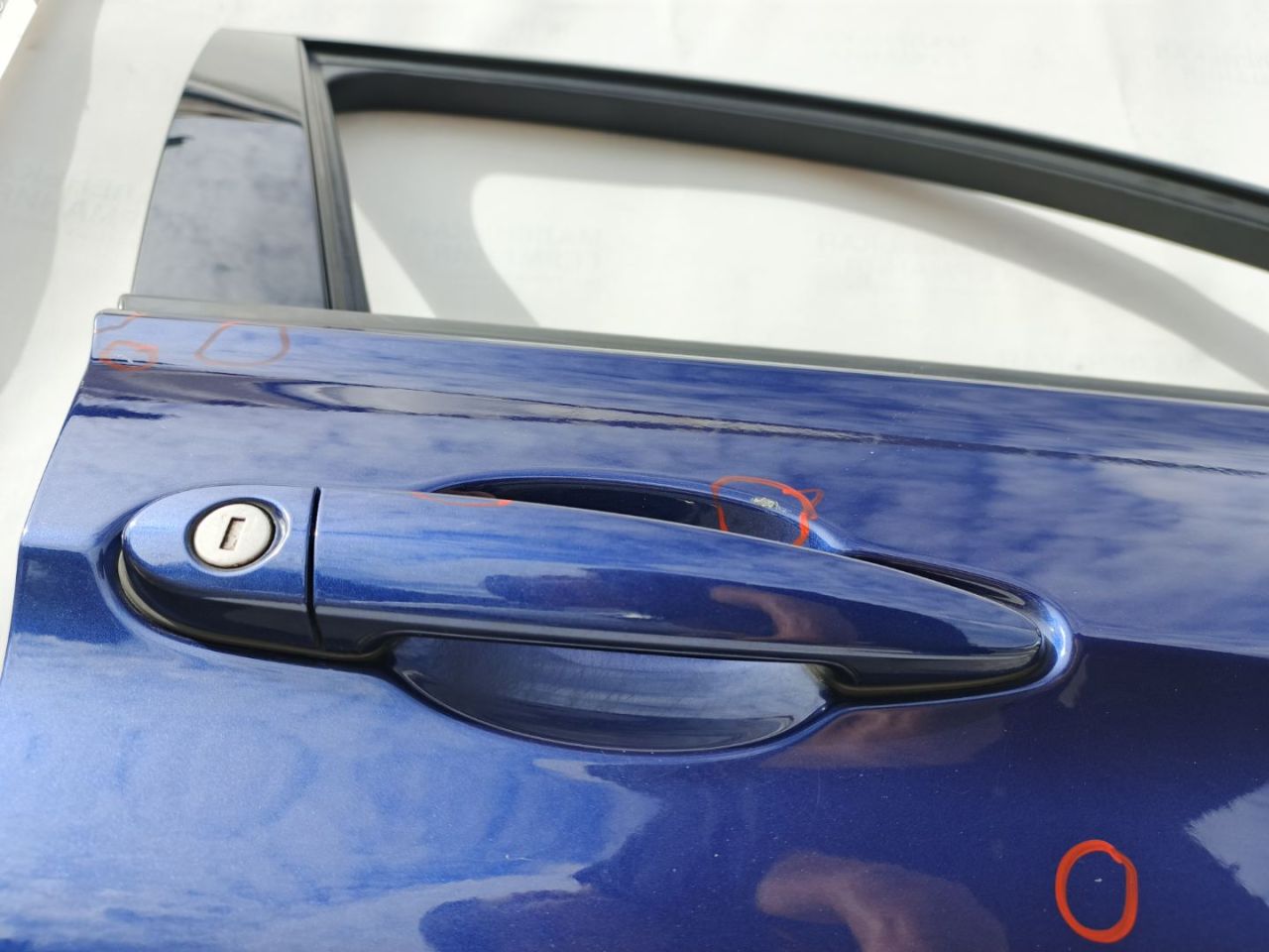 На наружной ручке открывания двери присутствуют царапины. На обшивке карты двери присутствуют повреждения и белый налет.