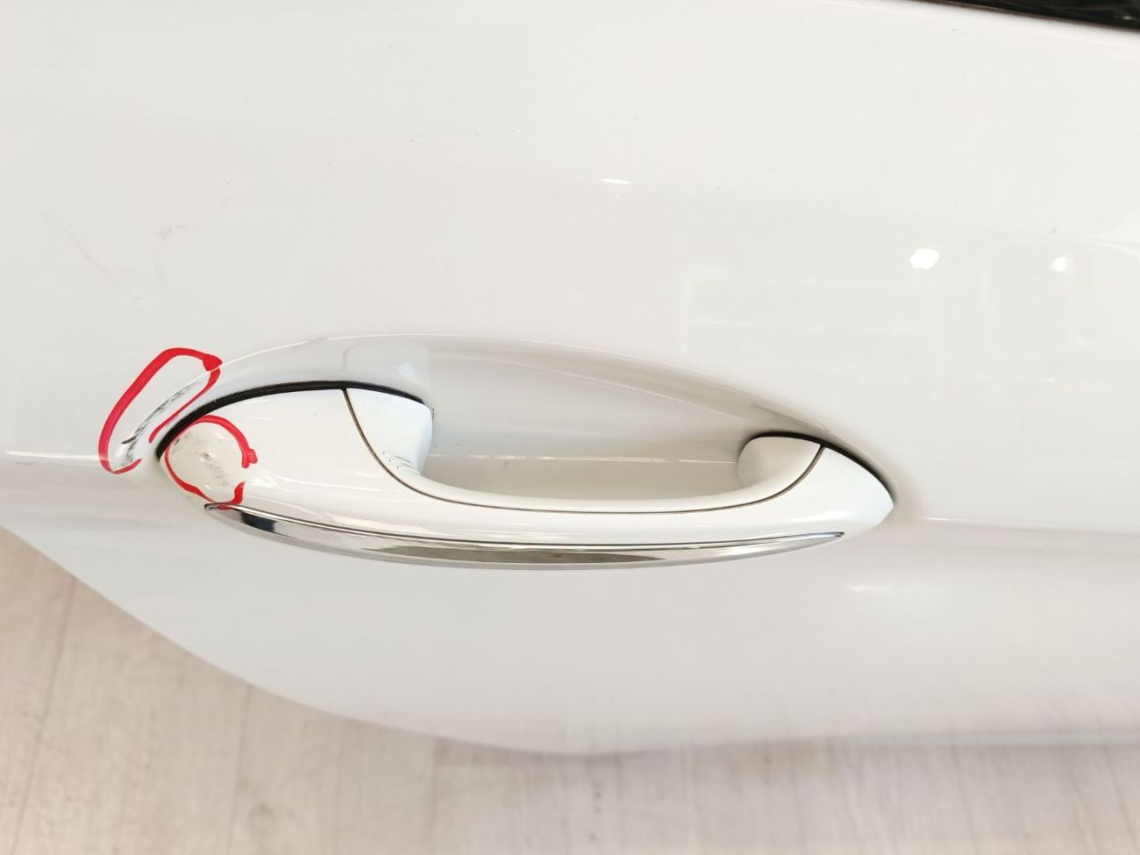 На ручке открывания двери присутствуют царапины.