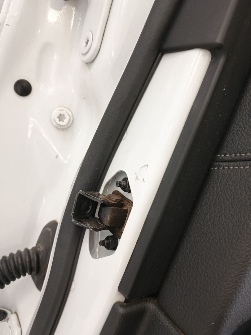 Обшивка дверной карты имеет различные повреждения.