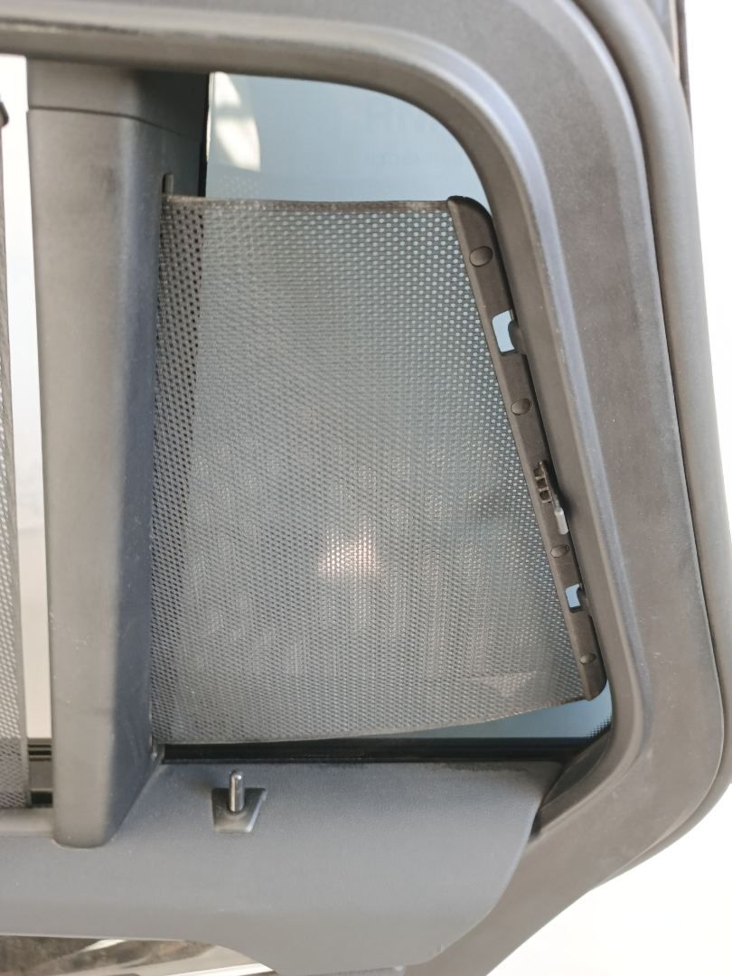 На окнах двери установлены механические шторки.