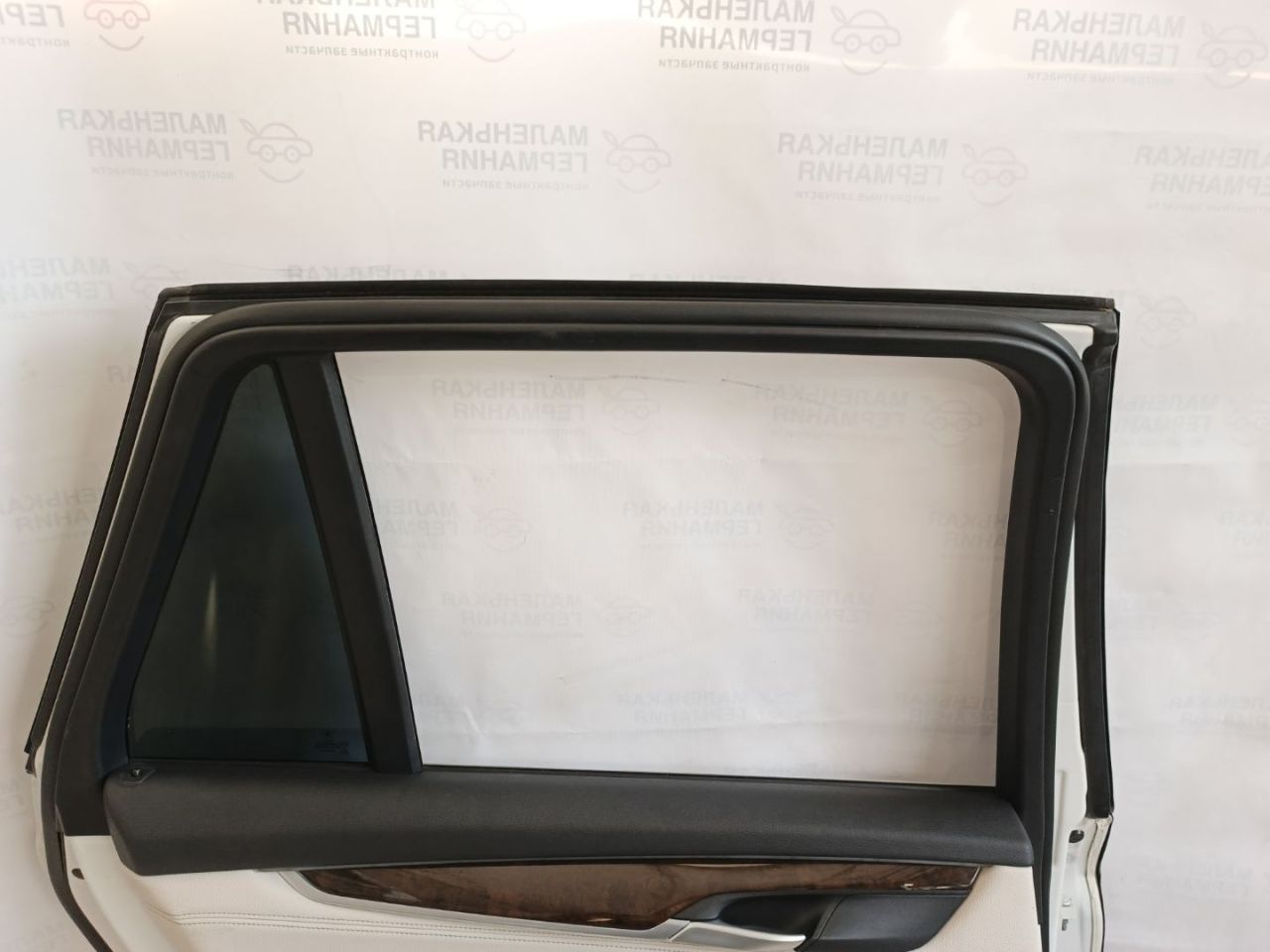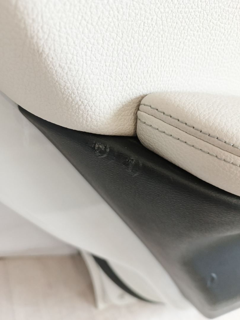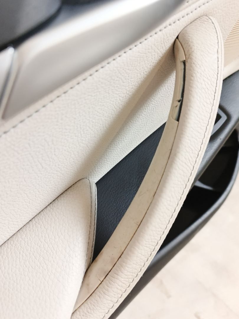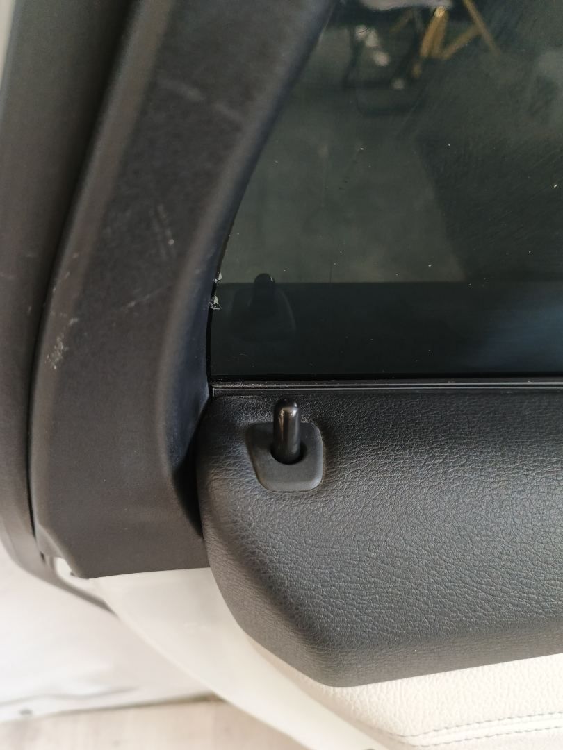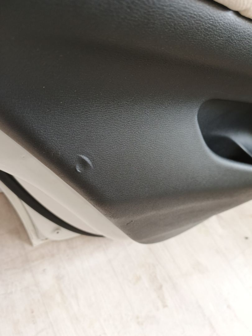 Повреждена внутренняя часть поручня дверной карты. На декоративной накладке дверной карты царапины.