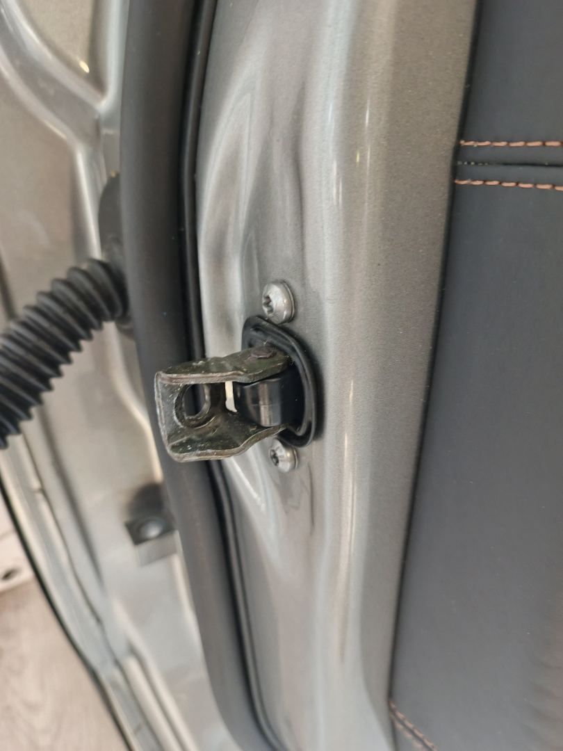 На обшивке дверной карты присутствуют различные повреждения. На двери присутствует штатная контурная подсветка, подсветка кармана.