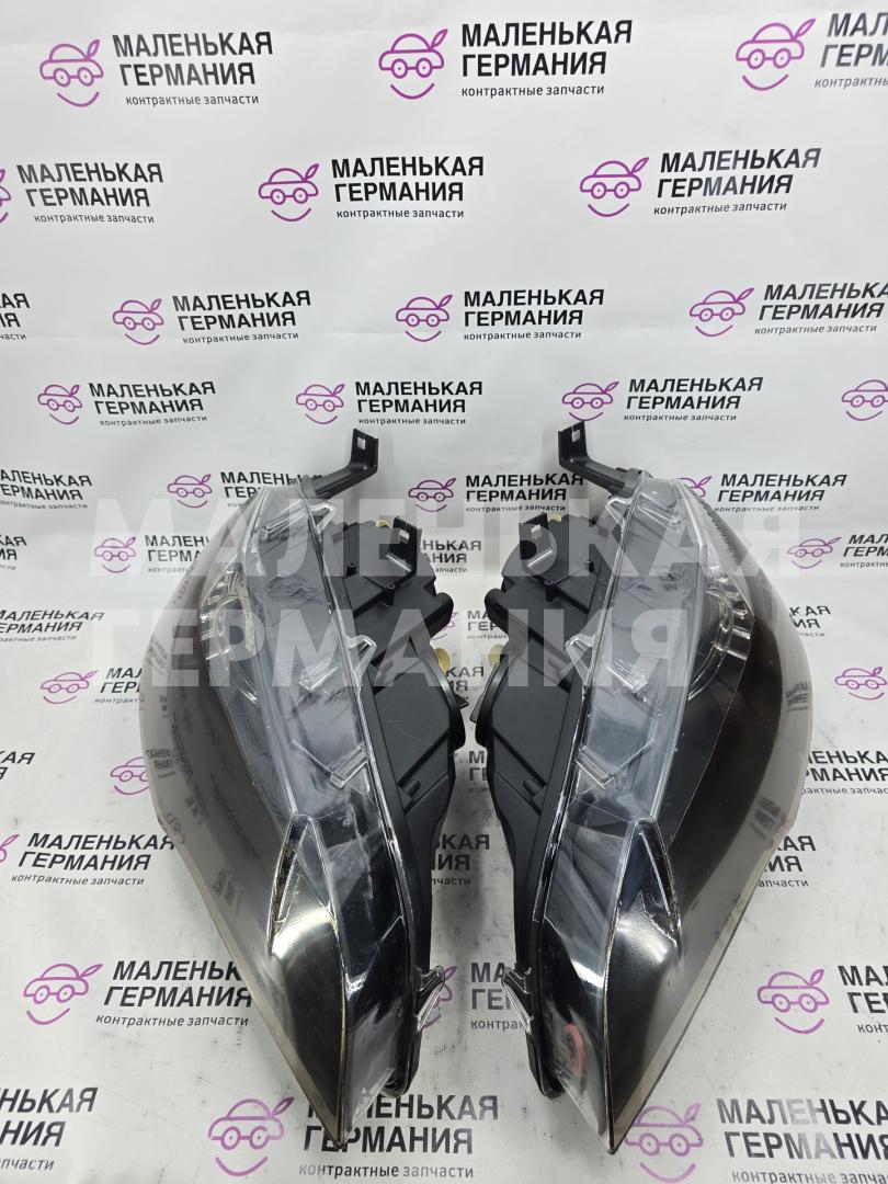 Комплект ксеноновых фар. Обклеены пленкой, присутствуют мелкие царапины, на правой фаре повреждено нижнее крепление (направляющее), скол на разъеме фишки, следы окраса авто