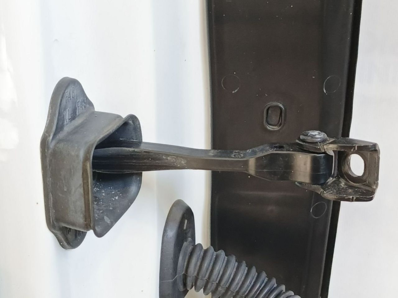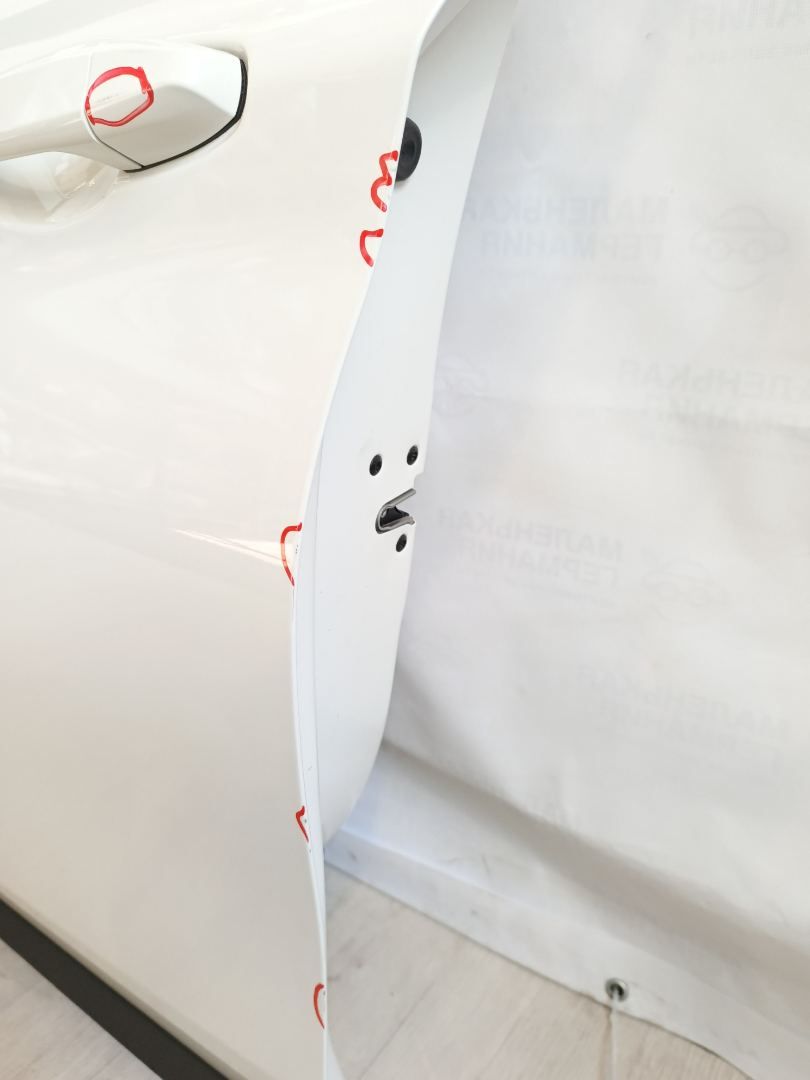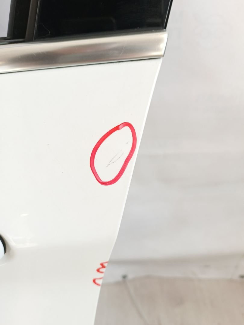 на обшивке дверной карты присутствую два небольших порыва. На внутреннем ребре верхнего заднего угла присутствуют царапины лакокрасочного покрытия.