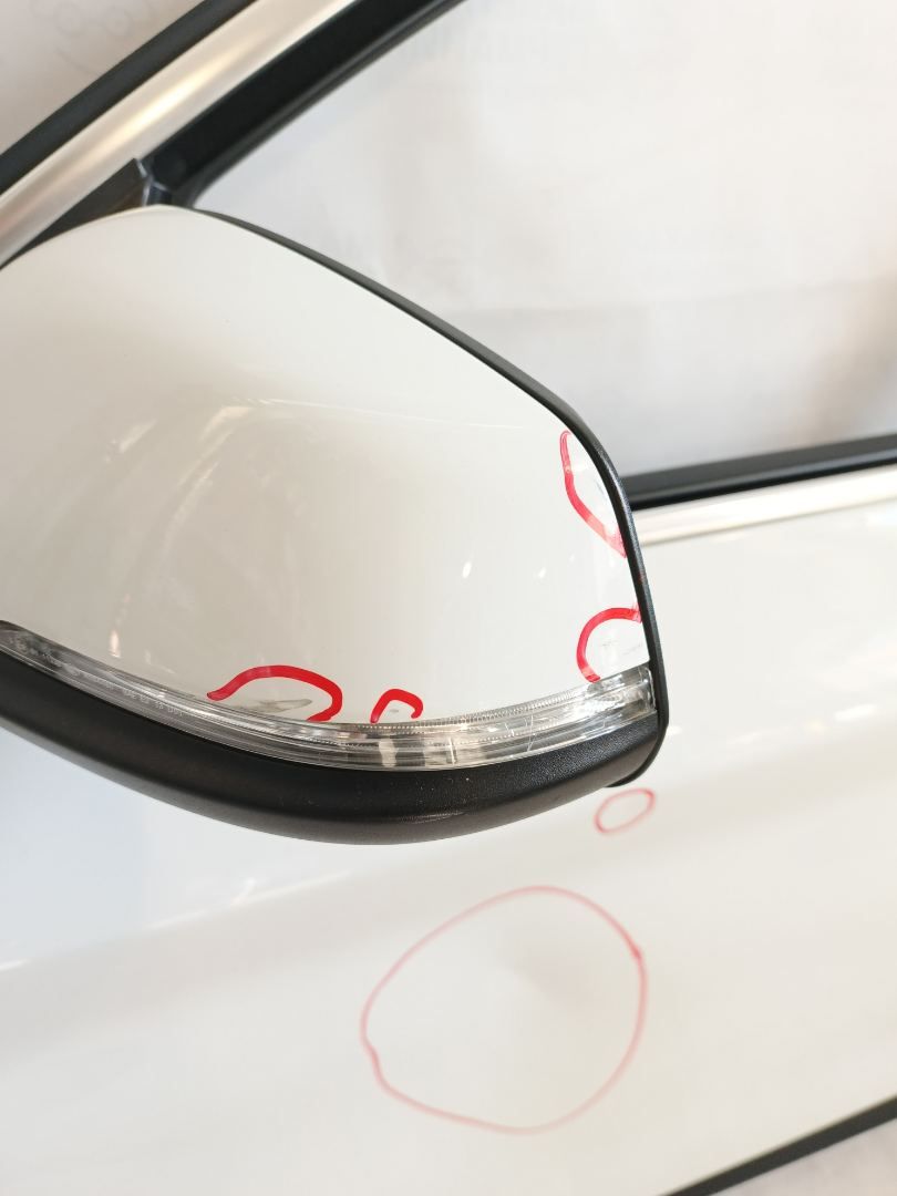 На наружной ручки открывания двери присутствует притертость. На крышке зеркала присутствуют потертости (возможно устранить полировкой).