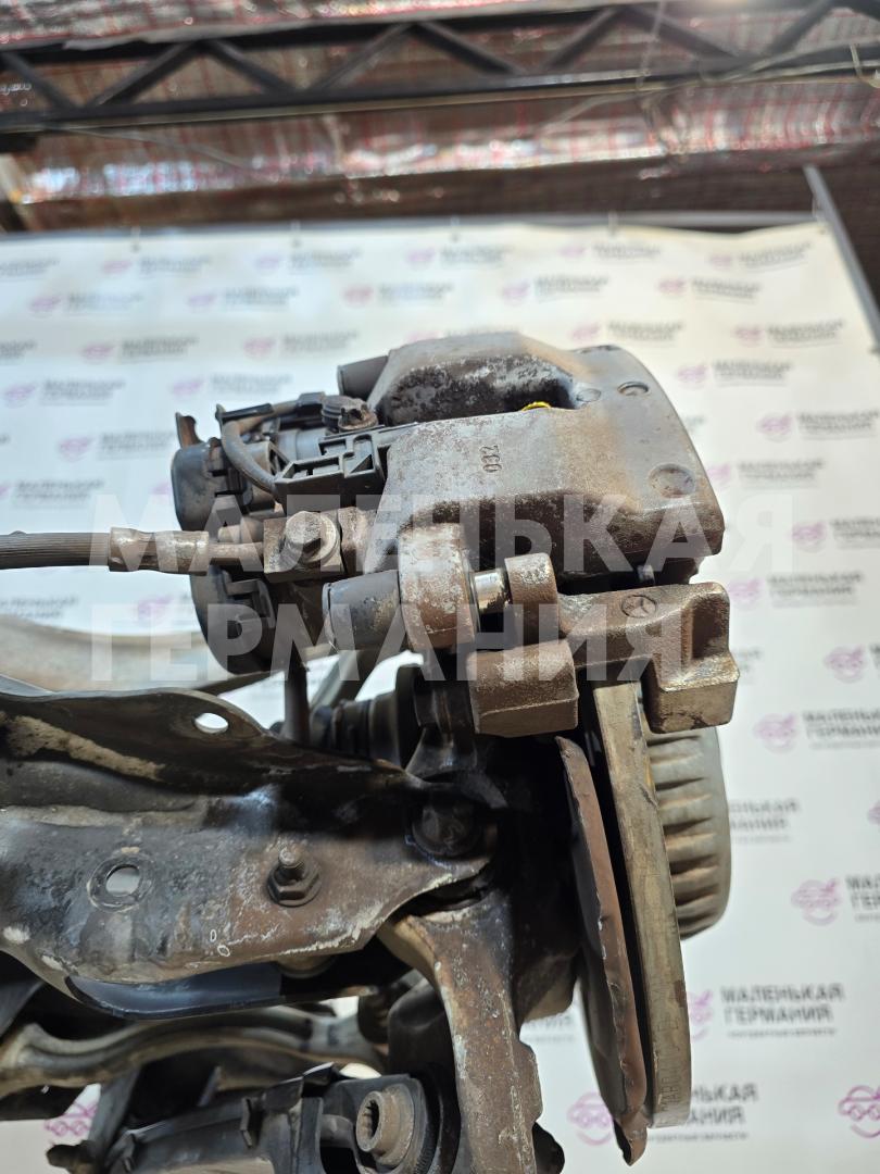 Редуктор, шесть алюминиевых рычагов, стабилизатор, стойки стабилизатора, четыре железных рычага, приводной вал правый, приводной вал левый, датчик дорожного просвета, суппорт тормозной правый, суппорт тормозной левый, датчики АБС, моторчики стояночного тормоза.