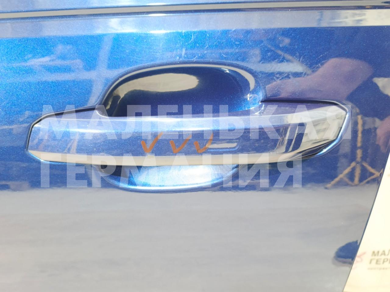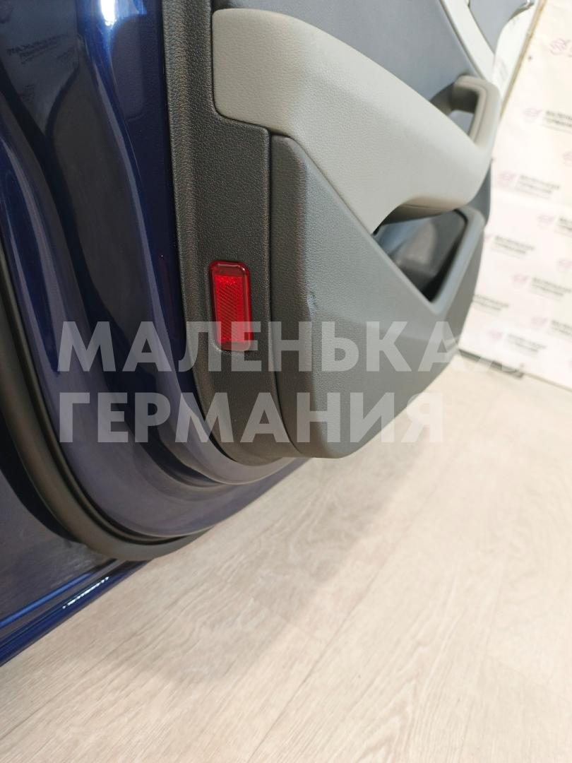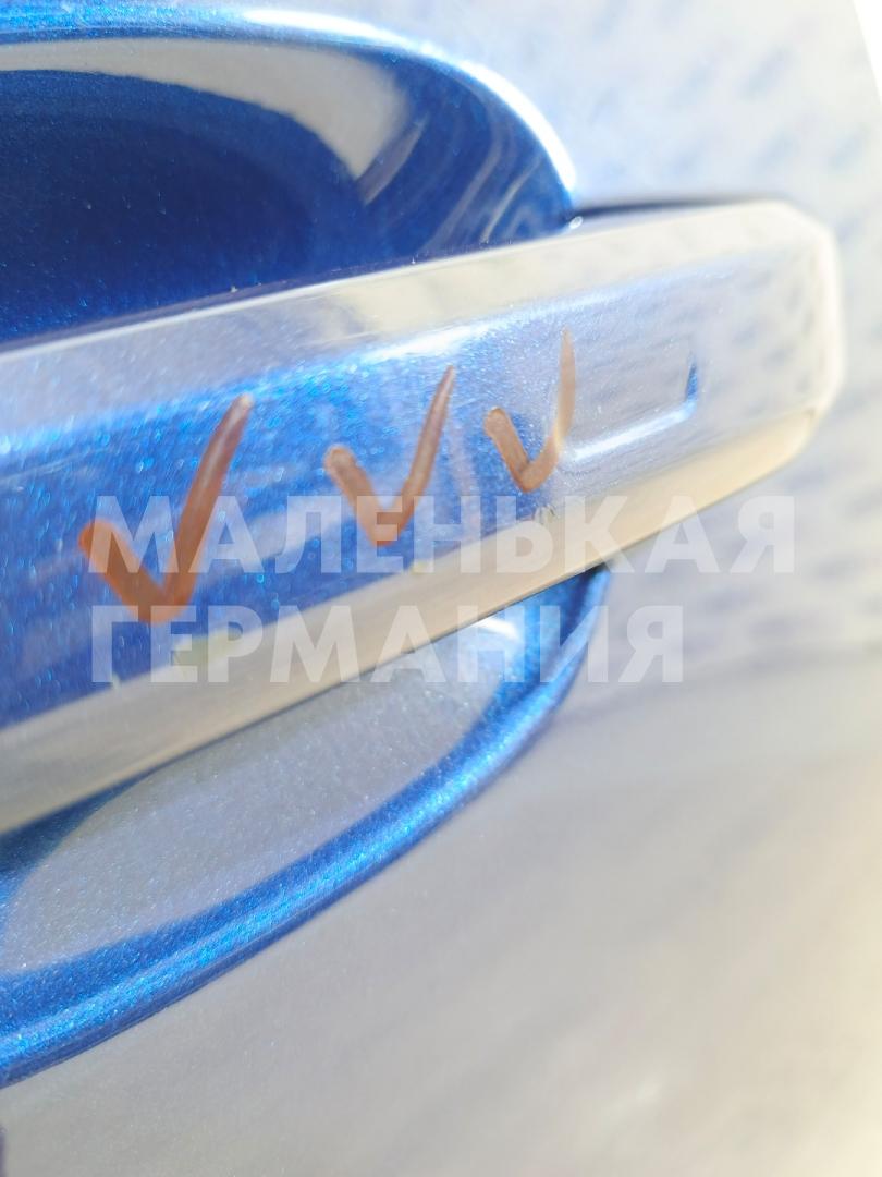 Есть дефект - небольшая вмятина. Царапина в передней части. На ручке открывания двери небольшие сколы. Потребуется полировка небольших участков окрашенной части двери. На кронштейне зеркала небольшая царапина.