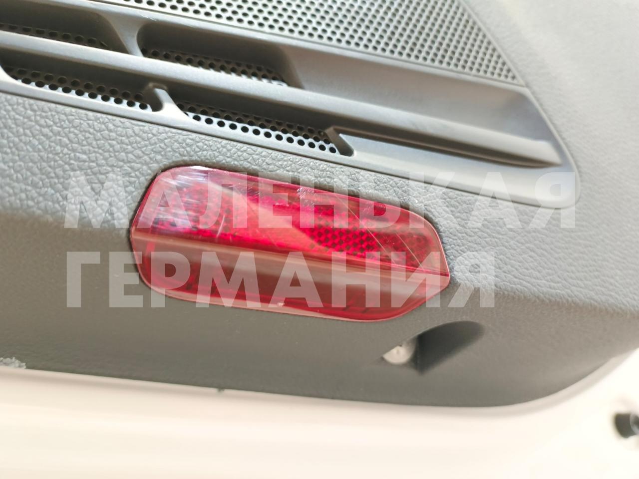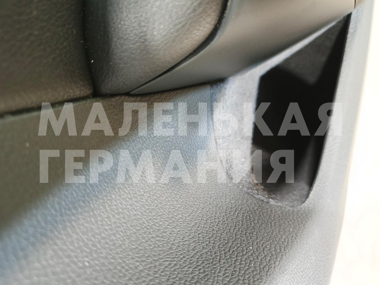 Есть дефект - на передней части двери локальное пятно зернистости. На ручке обшивки двери небольшой порез кожи.