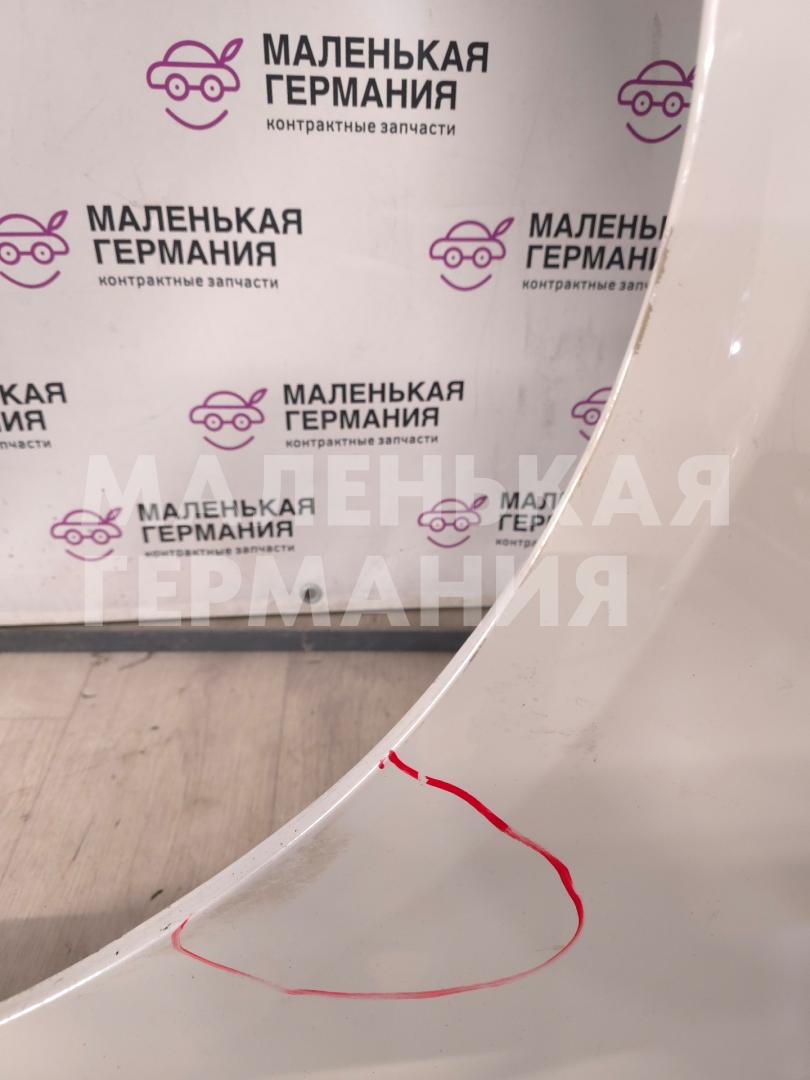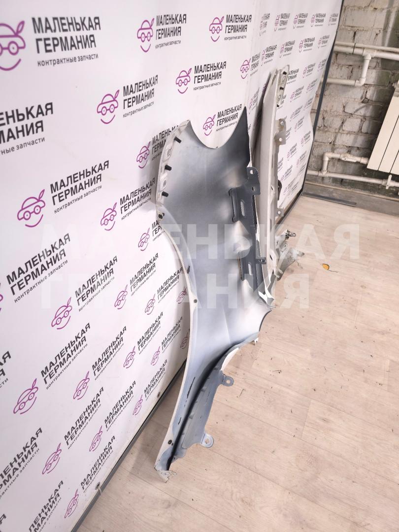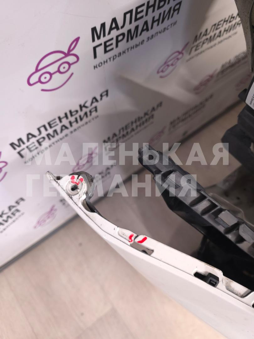 Бампер передний, оригинал, присутствуют глубокие царапины по нижней части, небольшая вмятина, нарушена целостность некоторых верхних креплений к крылу.
