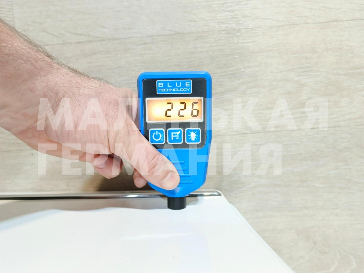 На переднем торце двери небольшая царапина краски.
