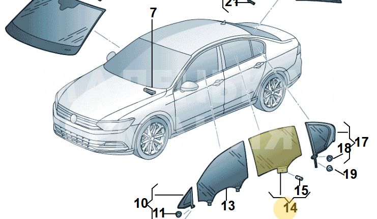 Стекло двери задней правой Volkswagen Passat B8 2015