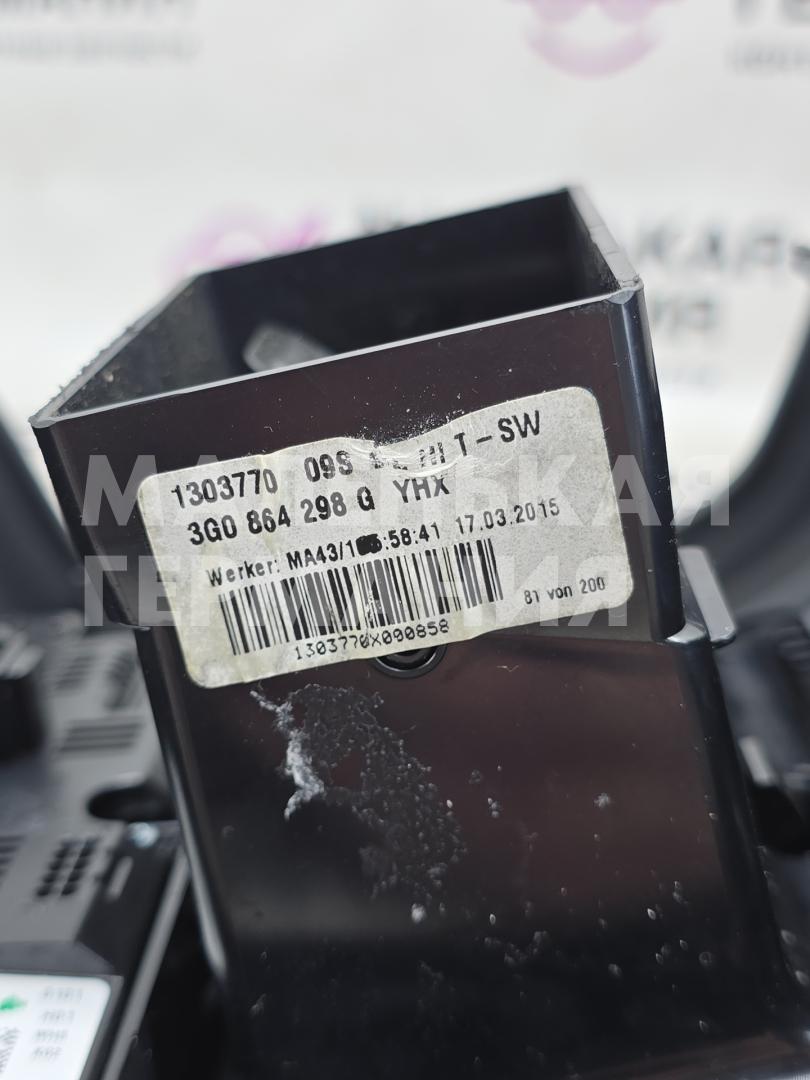 Наклада задней центральной консоли в сборе Блок управления климатической установкой 3G0907049B, Дефлектор воздушный 5G0864298G, Прикуриватель 3G0863916, разъемы 1J0919321, 4D0971638. Присутствуют мелкие царапины, потертости