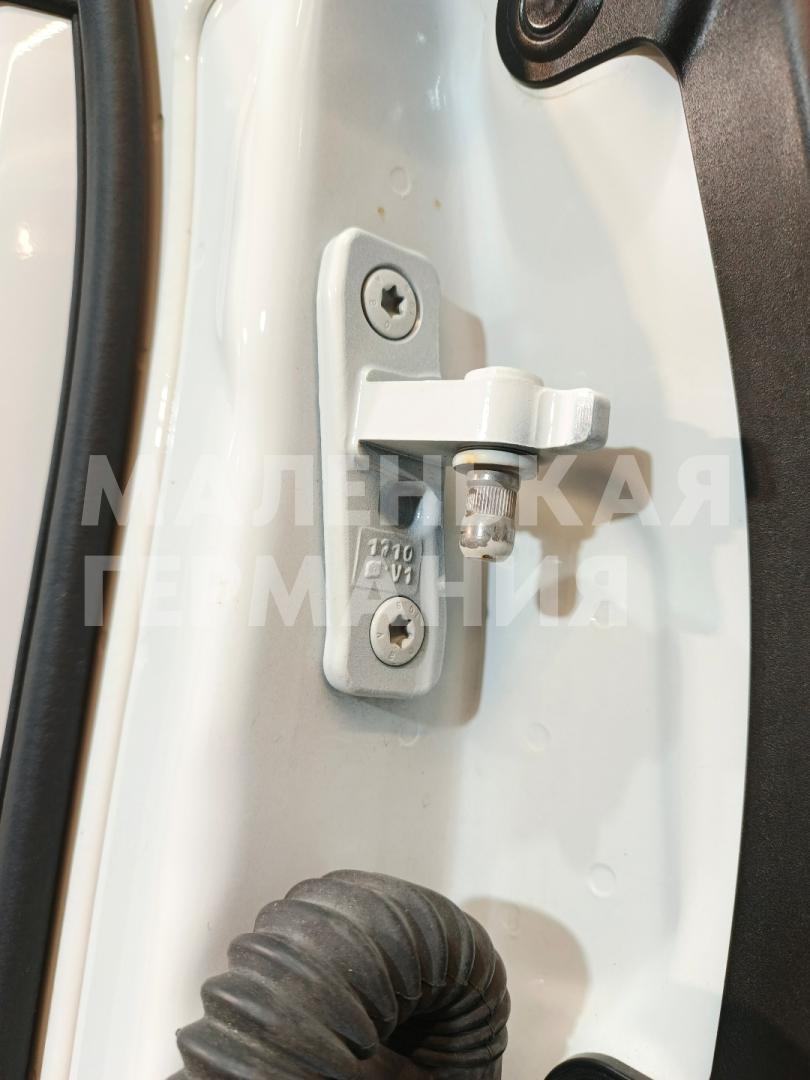На крышке зеркала заднего вида нанесена антигравийная пленка. На хромированной части наружной ручки мелкие сколы. На обшивке двери в районе кармана небольшой накол, отсутствует заглушка технологического отверстия в передней